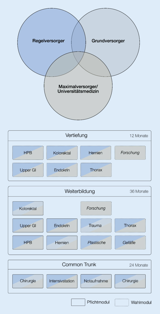 Discussion: One of the central points in the discussions was that high-quality surgical further training will only be achievable within training associations, especially given the impending hospital reform. The BCG plans to develop a modular further training association to make surgical further training in Berlin/Brandenburg fit for the future.