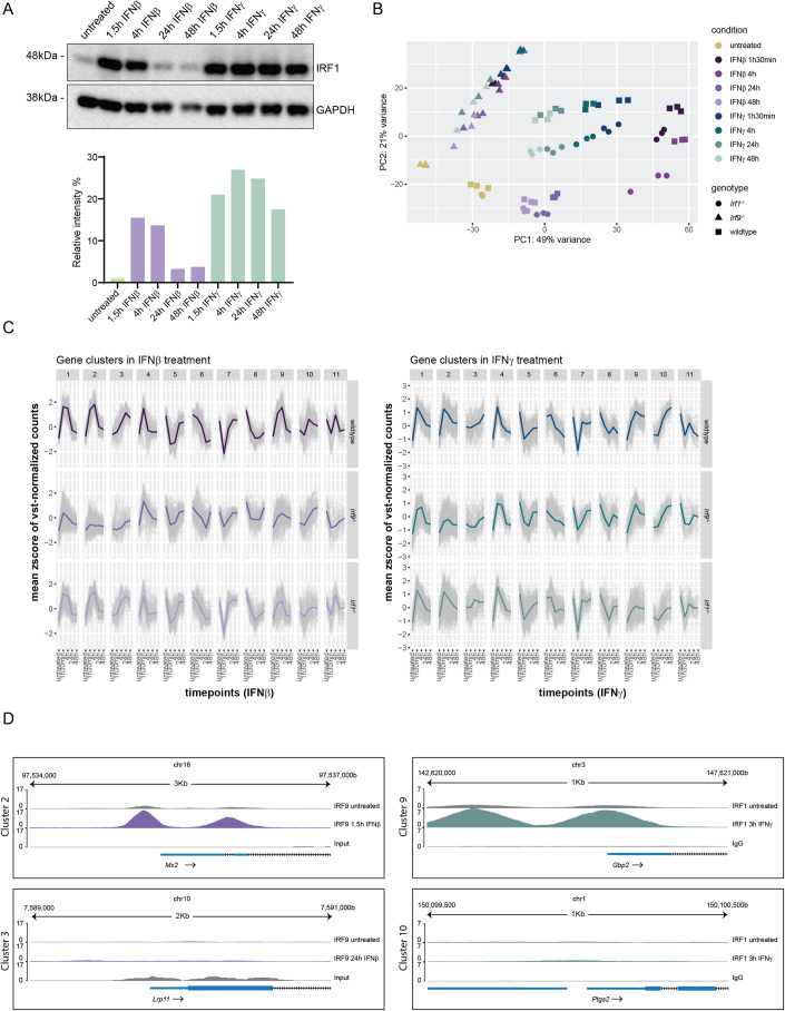Dynamic control of gene expression by ISGF3 and IRF1 during IFNβ and IFNγ signaling