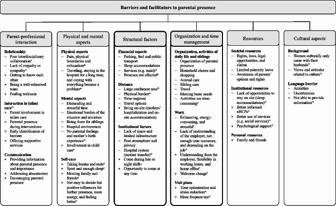 Conclusions: Multifactorial barriers and facilitators determine parental presence and experience in the neonatal unit. Parents and nHCPs made specific recommendations to improve parental presence.