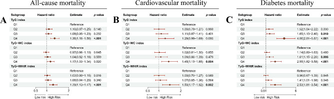 Keywords: All-cause mortality; Cardiovascular mortality; Diabetes mortality; Metabolic syndrome; TyG index; TyG-WC index; TyG-WHtR index.