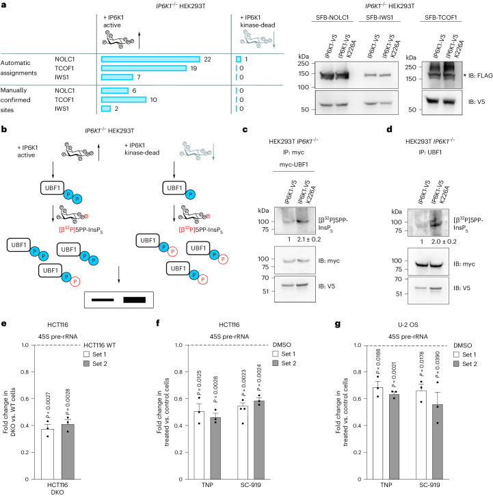 Reversible protein phosphorylation is a central signaling mechanism in eukaryotes. Although mass-spectrometry-based phosphoproteomics has become routine, identification of non-canonical phosphorylation has remained a challenge. Here we report a tailored workflow to detect and reliably assign protein pyrophosphorylation in two human cell lines, providing, to our knowledge, the first direct evidence of endogenous protein pyrophosphorylation. We manually validated 148 pyrophosphosites across 71 human proteins, the most heavily pyrophosphorylated of which were the nucleolar proteins NOLC1 and TCOF1. Detection was consistent with previous biochemical evidence relating the installation of the modification to inositol pyrophosphates (PP-InsPs). When the biosynthesis of PP-InsPs was perturbed, proteins expressed in this background exhibited no signs of pyrophosphorylation. Disruption of PP-InsP biosynthesis also significantly reduced rDNA transcription, potentially by lowering pyrophosphorylation on regulatory proteins NOLC1, TCOF1 and UBF1. Overall, protein pyrophosphorylation emerges as an archetype of non-canonical phosphorylation and should be considered in future phosphoproteomic analyses.