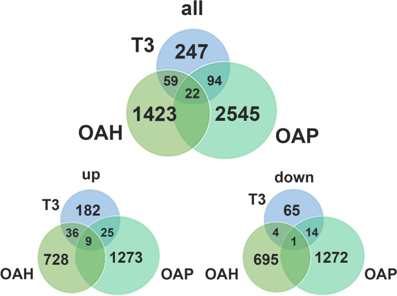 Designs: RNA-sequencing was performed on explant cartilage obtained from OA patients (n = 8), that was cultured ex vivo with or without T3 (10 ng/ml), and main findings were validated using RT-qPCR in an independent sample set (n = 22). Enrichment analysis was used for functional clustering and comparisons with available OA patient RNA-sequencing and GWAS datasets were used to establish relevance for OA pathophysiology by linking to OA patient genomic profiles.