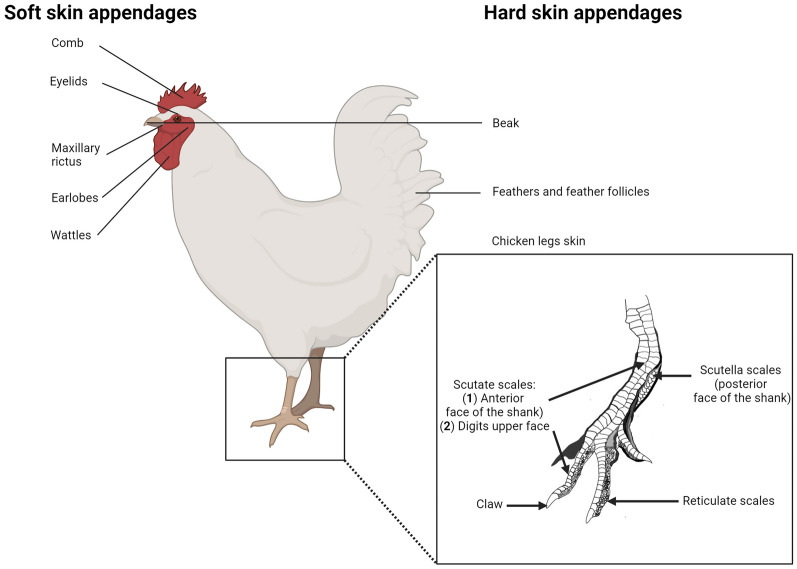 Interactions between avian viruses and skin in farm birds