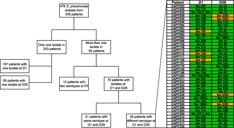 Results: Among 390 unique pneumococcal isolates, serotypes 15B/C, 11 A, 15 A and 23B1 were most prevalent (n = 145, 37.2%). PCV13 serotypes 3, 19A, and 19F were also identified (n = 25, 6.4%). STs associated with 19A and 19F demonstrated high genome variability, in contrast to serotype 3 (n = 13, 3.3%) that remained highly stable over a 20-year period. Non-susceptibility to penicillin (n = 61, 15.6%) and amoxicillin (n = 10, 2.6%) was low among the pneumococci analysed here and was independent of treatment dosage and duration. However, all 23B1 isolates (n = 27, 6.9%) were penicillin non-susceptible. This serotype was also identified in ST177, which is historically associated with the PCV13 serotype 19F and penicillin susceptibility, indicating a potential capsule-switch event.