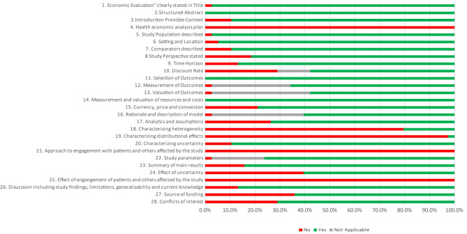 Results: 39 full EEs were eligible for review. Most studies were conducted in high-income countries (67%) and focused on high-risk therapeutic devices (72%). Studies comprised 25 cost-utility analyses, 13 cost-effectiveness analyses and 1 cost-benefit analysis. Most of the studies considered a lifetime horizon (41%) and a health system perspective (36%). Compliance with the CHEERS 2022 items varied among the studies.