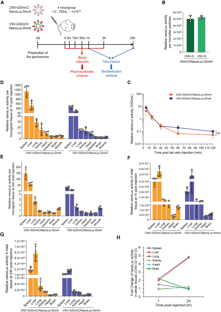 Keywords: CNV-G; Chandipura virus; VSV-G; biodistribution; catalase; exosomes; gectosomes; genome editing; macromolecule delivery; pharmacokinetics.