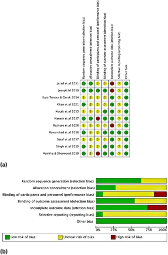 Methods: For the review, clinical studies with cross-over and parallel-arm randomized controlled trials (RCTs) were searched in seven electronic databases, followed by cross-referencing of the selected studies and related research synthesis. Risk of bias (RoB) assessment was carried out with Cochrane's RoB tool and a random-effects model was used. The meta-analysis was performed with the RevMan software 5.4.1.