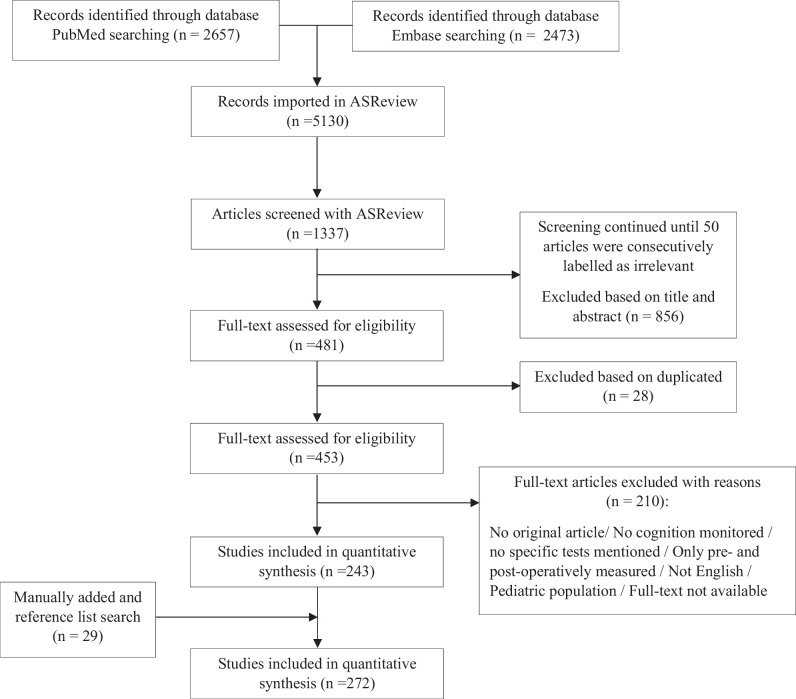 Methods: We replicated the systematic search of the study from 2018 in PubMed and Embase from February 2017 to November 2023, yielding 5130 potentially relevant articles. We used the artificial machine learning tool ASReview for screening and included 272 papers that gave a detailed description of the neuropsychological tests used during awake craniotomy.