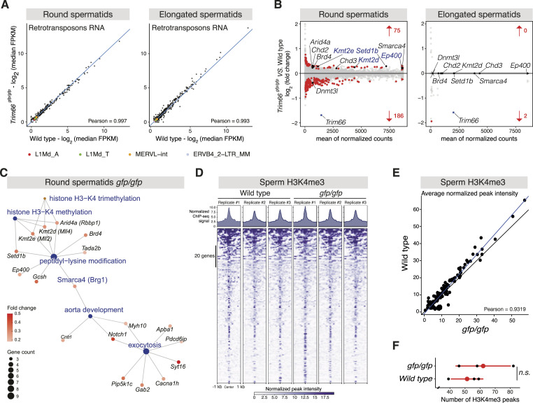 The tripartite motif-containing protein 66 (TRIM66, also known as TIF1-delta) is a PHD-Bromo-containing protein primarily expressed in post-meiotic male germ cells known as spermatids. Biophysical assays showed that the TRIM66 PHD-Bromodomain binds to H3 N-terminus only when lysine 4 is unmethylated. We addressed TRIM66's role in reproduction by loss-of-function genetics in the mouse. Males homozygous for Trim66-null mutations produced functional spermatozoa. Round spermatids lacking TRIM66 up-regulated a network of genes involved in histone acetylation and H3K4 methylation. Profiling of H3K4me3 patterns in the sperm produced by the Trim66-null mutant showed minor alterations below statistical significance. Unexpectedly, Trim66-null males, but not females, sired pups overweight at birth, hence revealing that Trim66 mutations cause a paternal effect phenotype.