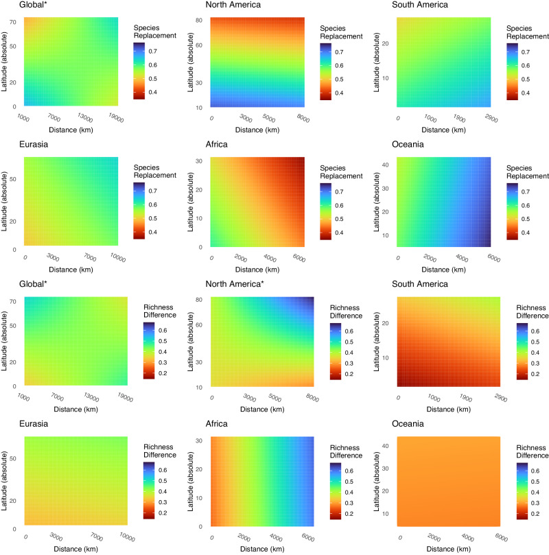 Global biodiversity gradients are generally expected to reflect greater species replacement closer to the equator. However, empirical validation of global biodiversity gradients largely relies on vertebrates, plants, and other less diverse taxa. Here we assess the temporal and spatial dynamics of global arthropod biodiversity dynamics using a beta-diversity framework. Sampling includes 129 sampling sites whereby malaise traps are deployed to monitor temporal changes in arthropod communities. Overall, we encountered more than 150,000 unique barcode index numbers (BINs) (i.e. species proxies). We assess between site differences in community diversity using beta-diversity and the partitioned components of species replacement and richness difference. Global total beta-diversity (dissimilarity) increases with decreasing latitude, greater spatial distance and greater temporal distance. Species replacement and richness difference patterns vary across biogeographic regions. Our findings support long-standing, general expectations of global biodiversity patterns. However, we also show that the underlying processes driving patterns may be regionally linked.