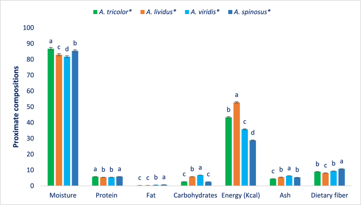 Nutritional and bioactive properties and antioxidant potential of Amaranthus tricolor, A. lividus, A viridis, and A. spinosus leafy vegetables