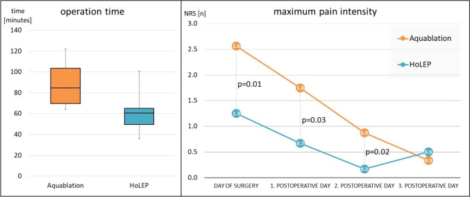 Conclusions: While aquablation revealed temporary benefits regarding ejaculation and continence at three months, HoLEP was superior concerning operation time, the safety profile and volumetric results.