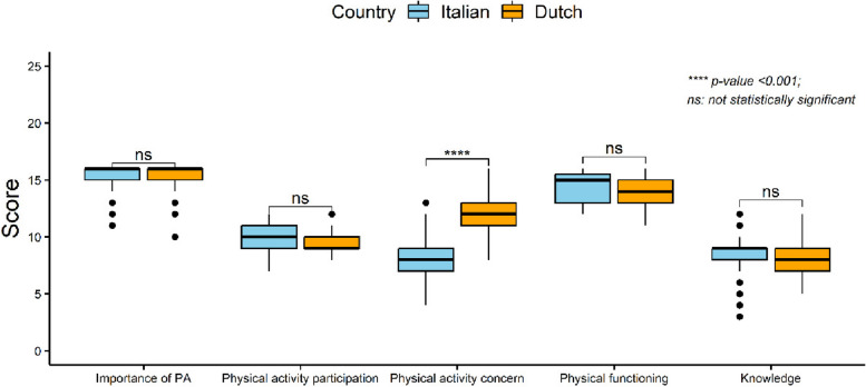 Methods: A cross-cultural study. An (online) survey was distributed among orthopaedic surgeons in Italy and the Netherlands. Chi-square and Mann-Whitney tests were used to compare surgeons' and clinics' characteristics, and questionnaires' scores, respectively. A linear regression analysis was conducted to assess which surgeon characteristics influence attitude towards PA.