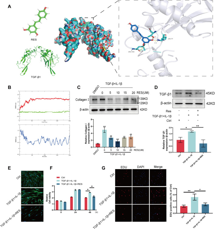 Results: Resveratrol mitigates fibrosis in rheumatoid arthritis-associated interstitial lung disease and reduces oxidative stress and inflammation in RA-ILD. Furthermore, resveratrol restored cellular autophagy. When combined with the in vitro model, it was further demonstrated that resveratrol could suppress TGF-β1 expression, and reduce AKT metamorphic activation, consequently inhibiting the opening of AKT/MEM175 ion channels. This, in turn, lowers lysosomal pH and enhances the fusion of autophagosomes with lysosomes, ultimately ameliorating the progression of RA-ILD.