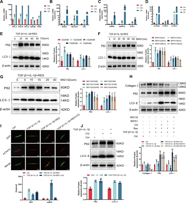 Conclusion: In this study, we demonstrated that resveratrol restores autophagic flux through the AKT/MEM175 pathway to attenuate inflammation as well as fibrosis in RA-ILD by combining in vivo and in vitro experiments. It further provides a theoretical basis for the selection of therapeutic targets for RA-ILD.