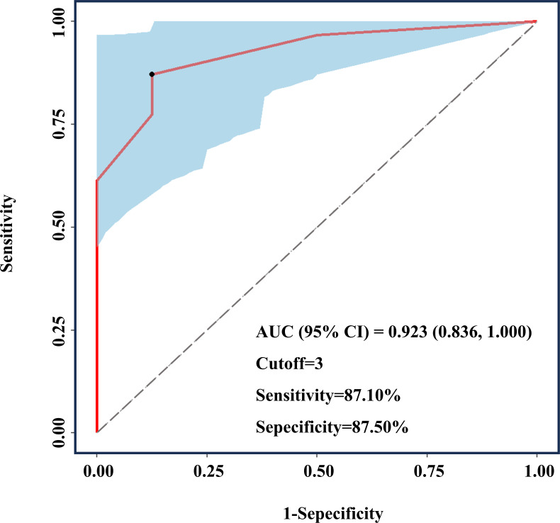 Results: 33 (76.74%) of the 43 families (110 FDRs) were identified as FCCM (85 FDRs). Receiver operating characteristic analysis revealed three lesions on T2-weighted imaging (T2WI) were the strong indicator for distinguishing probands with FCCM (sensitivity, 87.10%; specificity, 87.50%). Of the 85 FDRs, 31 were diagnosed with FCCM, resulting in a prevalence of 36.5% (26.2%-46.7%). In families with FCCMs, the mutation rates for CCM1, CCM2 and CCM3 were 45.45%, 21.21% and 9.09%, respectively. Furthermore, 53.13% of patients were asymptomatic, 17.19% were intracranial haemorrhage and 9.38% were epilepsy. The mean age of symptom onset analysed by KM was 46.67 (40.56-52.78) years.