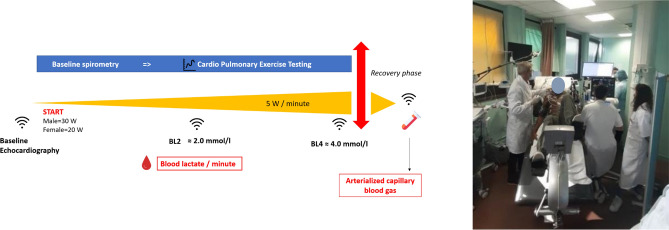 This pilot study focusing on Sickle Cell Anemia (SCA) patients offers a comprehensive and integrative evaluation of respiratory, cardiovascular, hemodynamic, and metabolic variables during exercise. Knowing that diastolic dysfunction is frequent in this population, we hypothesize that a lack of cardiac adaptation through exercise might lead to premature increase in blood lactate concentrations in SCA patients, a potential trigger for acute disease complication. SCA patients were prospectively included in PHYSIO-EXDRE study and underwent a comprehensive stress test with a standardized incremental exercise protocol up to 4 mmol L-1 blood lactate concentration (BL4). Gas exchange, capillary lactate concentration and echocardiography were performed at baseline, during stress test (at ∼ 2 mmol L-1) and BL4. The population was divided into two groups and compared according to the median value of percentage of theoretical peak oxygen uptake (% ) at BL4. Twenty-nine patients were included (42 ± 12 years old, 48% of women). Most patients reached BL4 at low-intensity exercise [median value of predicted power output (W) was 37%], which corresponds to daily life activities. The median value of % at BL4 was 39%. Interestingly, diastolic maladaptation using echocardiography during stress test along with hemoglobin concentration were independently associated to early occurrence of BL4. As BL4 occurs for low-intensity exercises, SCA patients may be subject to acidosis-related complications even during their daily life activities. Beyond assessing physical capacities, our study underlines that diastolic maladaptation during exercise is associated with an early increase in blood lactate concentration.