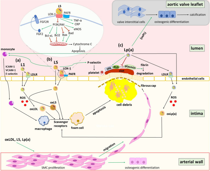 Recent findings: Lp(a) tends to accumulate in artery walls, promoting plaque formation and potentially triggering atherosclerosis progression through prothrombotic or antifibrinolytic effects. High Lp(a) levels correlate with calcific aortic stenosis and atherothrombosis risk. L5 can induce endothelial cell apoptosis and increase vascular permeability, inflammation, and atherogenesis, playing a key role in initiating atherosclerosis. Elevated L5 levels in certain high-risk populations may serve as a distinctive predictor of ASCVD. L5 and Lp(a) are both atherogenic lipoproteins contributing to ASCVD through distinct mechanisms. Lp(a) has garnered attention, but equal consideration should be given to L5.