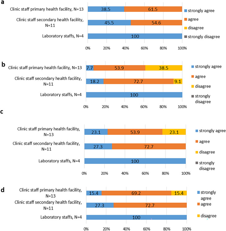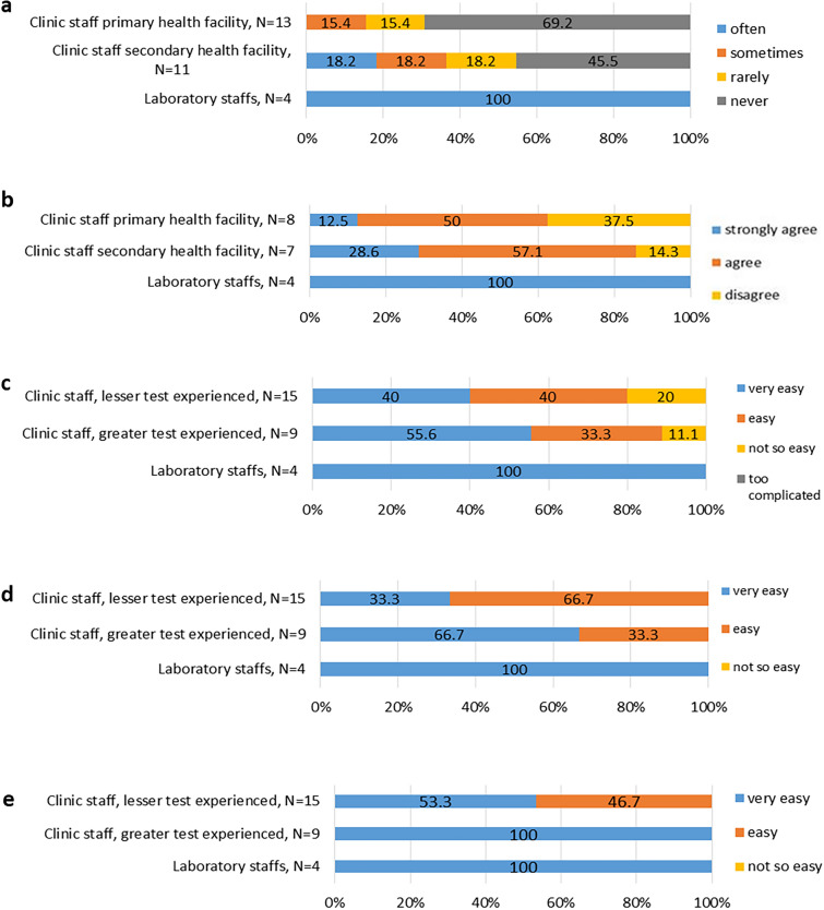 Methods: We analysed data from healthcare workers at five obstetric health facilities that participated in the BABY study which enrolled mothers living with HIV and their HIV exposed infants who were followed up until 6 weeks post-delivery. Nurses and laboratory personnel were trained and performed HEID procedures using the Xpert HIV-1 Qual PoC systems. Involved personnel were interviewed on feasibility, knowledge and competency of procedures and overall impression of the use of HIV-1 Qual PoC system in clinical settings.