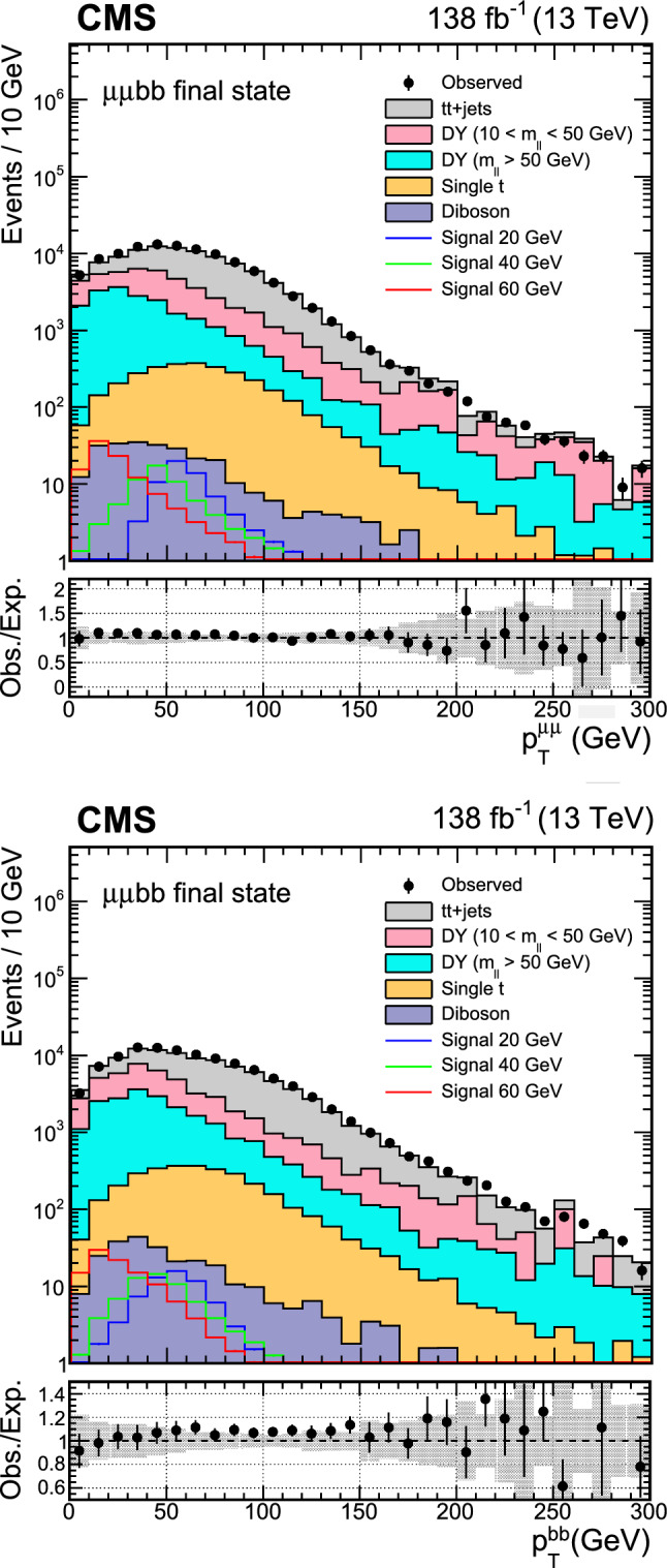 The distributions of the (upper) dimuon systems and (lower) di-b-jet system.…