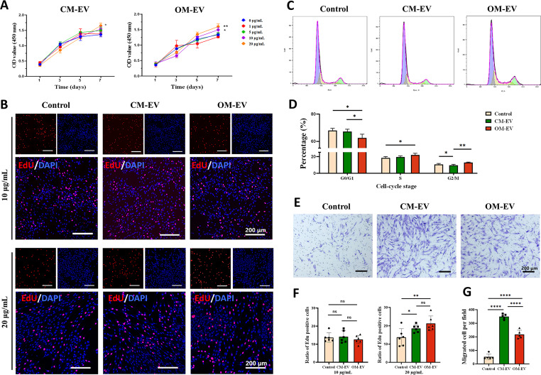 Results: We successfully employed the odontogenic induction medium (OM) of SHEDs to generate functional EV (OM-EV). The OM-EV at a concentration of 20 µg/mL was demonstrated to promote the proliferation and migration of dental pulp stem cells (DPSCs). The results revealed that OM-EV has a better potential to promote odontogenic differentiation of DPSCs than common EVs (CM-EV) in vitro through Alizarin red phalloidin, alkaline phosphatase staining, and assessment of the expression of odontogenic-related markers. High-throughput sequencing suggests that the superior effects of OM-EV may be attributed to activation of the AMPK/mTOR pathway. Simultaneously, we prepared a photocrosslinkable gelatin methacryloyl (GelMA) to construct an OM-EV-encapsulated hydrogel. The hydrogel exhibited sustained release of OM-EV and good biocompatibility for DPSCs. The released OM-EV from the hydrogel could be internalized by DPSCs, thereby enhancing their survival and migration. In tooth root slices that were subcutaneously transplanted in nude mice, the OM-EV-encapsulated hydrogel was found to facilitate dentinogenesis. After 8 weeks, there was more formation of mineralized tissue, as well as higher levels of dentin sialophosphoprotein (DSPP) and dentin matrix protein-1 (DMP-1).