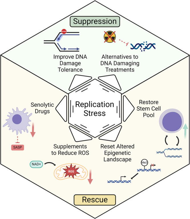 Replication stress refers to slowing or stalling of replication fork progression during DNA synthesis that disrupts faithful copying of the genome. While long considered a nexus for DNA damage, the role of replication stress in aging is under-appreciated. The consequential role of replication stress in promotion of organismal aging phenotypes is evidenced by an extensive list of hereditary accelerated aging disorders marked by molecular defects in factors that promote replication fork progression and operate uniquely in the replication stress response. Additionally, recent studies have revealed cellular pathways and phenotypes elicited by replication stress that align with designated hallmarks of aging. Here we review recent advances demonstrating the role of replication stress as an ultimate driver of cellular senescence and aging. We discuss clinical implications of the intriguing links between cellular senescence and aging including application of senotherapeutic approaches in the context of replication stress.