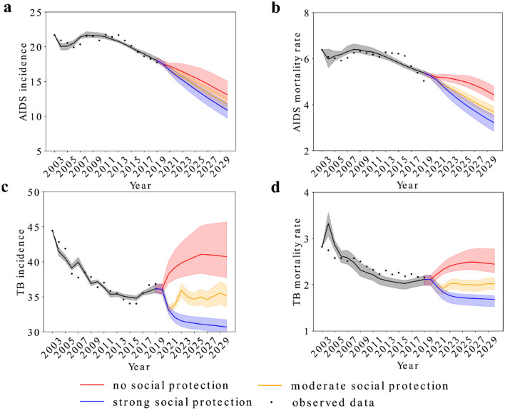 Evaluating social protection mitigation effects on HIV/AIDS and Tuberculosis through a mathematical modelling study