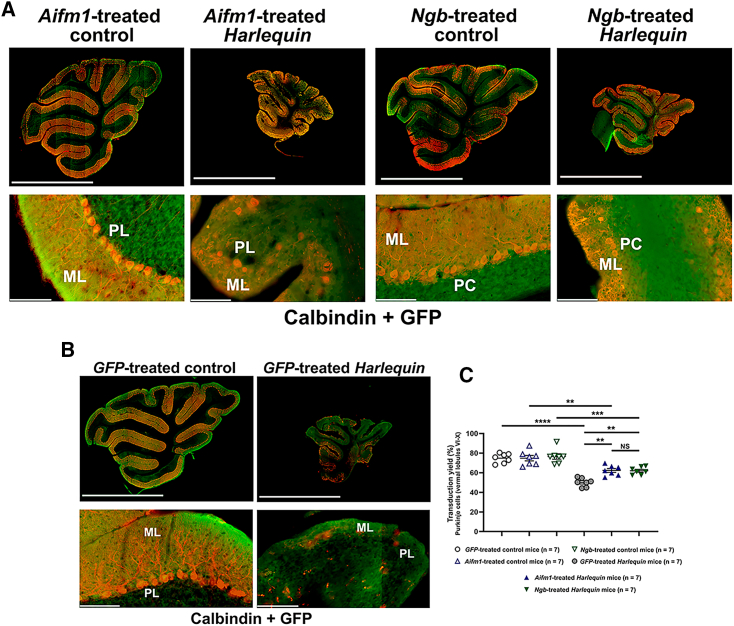 Keywords: AAV2/9 vectors; Apoptosis-inducing factor; Harlequin mice; Purkinje cells; gene therapy; mitochondria; neuroglobin; respiratory chain.