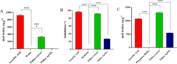 This study explores the green synthesis of silver nanoparticles (AgNPs) using a methanolic extract of fermented pollen from Tetragonisca angustula, a species of stingless bees. The AgNPs exhibit spherical morphology, low charge values, and suspension stability, with their unique composition attributed to elements from the pollen extract. Antioxidant assays show comparable activity between the pollen extract and AgNPs, emphasizing the retention of antioxidant effects. The synthesized AgNPs demonstrate antimicrobial activity against multidrug-resistant bacteria, highlighting their potential in combating bacterial resistance. The AgNPs exhibit no toxic effects on Drosophila melanogaster and even enhance the hatching rate of eggs. The study underscores the innovative use of stingless bee pollen extract in green synthesis, offering insights into the varied applications of AgNPs in biomedicine.