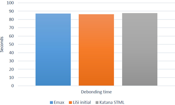 Results: There was no significant difference in debonding time between the different materials (p = 0.995). The longest debonding time was found for Katana STML (87.52 ± 20.45) (seconds), followed by Emax (86.94 ± 20.63) (seconds), while the lowest value was found for LiSi initial (86.14 ± 25.16) (seconds). In terms of damage to the debonded veneers, The Emax and zirconia samples showed no damage. However, 40% of the LiSi samples fractured during debonding, and 20% exhibited cracks. Only 40% of the LiSi samples were sound after debonding.