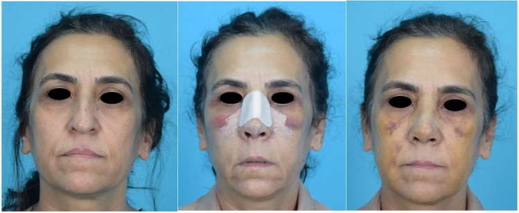- Tasman AJ (2018) Reducing periorbital edema and ecchymosis after rhinoplasty: literature review and personal approach. Facial Plast Surg 34(01):014–021 - PubMed