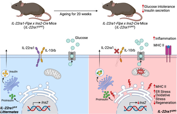 Pancreatic beta-cell IL-22 receptor deficiency induces age-dependent dysregulation of insulin biosynthesis and systemic glucose homeostasis