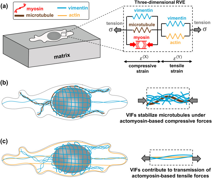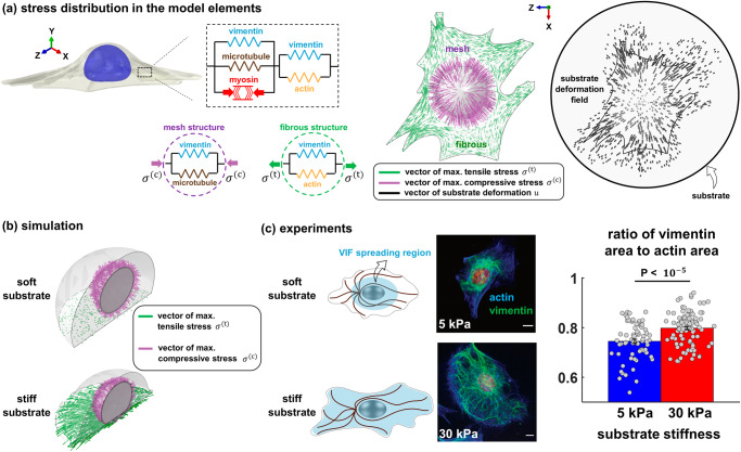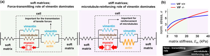 The cytoskeleton is a complex network of interconnected biopolymers consisting of actin filaments, microtubules, and intermediate filaments. These biopolymers work in concert to transmit cell-generated forces to the extracellular matrix required for cell motility, wound healing, and tissue maintenance. While we know cell-generated forces are driven by actomyosin contractility and balanced by microtubule network resistance, the effect of intermediate filaments on cellular forces is unclear. Using a combination of theoretical modeling and experiments, we show that vimentin intermediate filaments tune cell stress by assisting in both actomyosin-based force transmission and reinforcement of microtubule networks under compression. We show that the competition between these two opposing effects of vimentin is regulated by the microenvironment stiffness. These results reconcile seemingly contradictory results in the literature and provide a unified description of vimentin's effects on the transmission of cell contractile forces to the extracellular matrix.