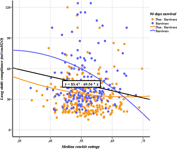 Results: The presence of squawks was associated with the ICU LOS, outcome and 90-day mortality. Other features (age, SOFA score & oxygenation index upon admission, minimum crackle entropy) had significant impact on outcome. Additional features affecting the 90-d survival were age and mean crackle entropy. Multivariate logistic regression showed that survival was affected by age, baseline SOFA, baseline oxygenation index and minimum crackle entropy.