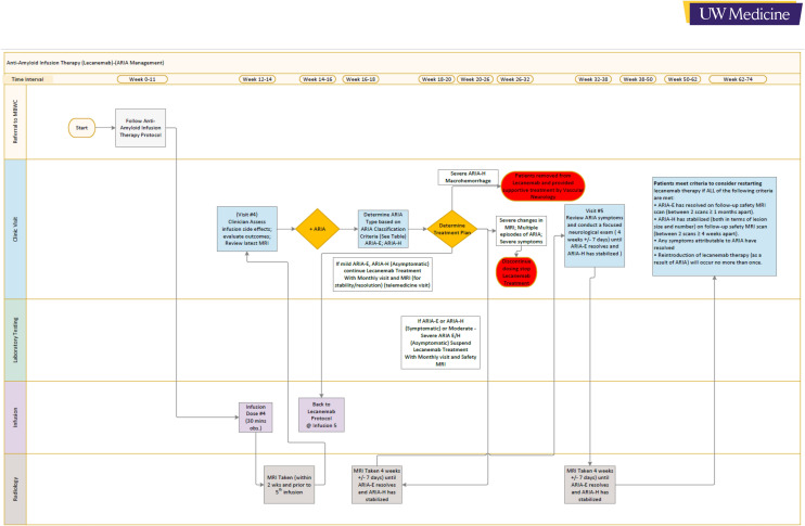 The US Food and Drug Administration (FDA) approval of lecanemab for early-stage Alzheimer's disease (AD) represents an exciting new chapter in the management of neurodegenerative disease, but likewise presents numerous clinical, technical, and financial logistical challenges for both academic and non-academic medical institutions hoping to administer this drug. Minimal resources exist that provide guidance for establishing and maintaining a lecanemab treatment program at the institutional level. The current report aims to provide healthcare institutions a framework for the planning, onboarding, and longitudinal treatment of AD with anti-amyloid monoclonal antibody treatments. We present an implementation study involving three stages: (1) feasibility assessment, (2) operations and going live, and (3) monitoring assessment. We found that implementation of lecanemab in clinical practice was feasible due to the assignment of an enterprise-wide project manager to facilitate the planning phase, a cost analysis showing that lecanemab was financially sustainable, and the development of electronic medical record tools to support operational efficiency.