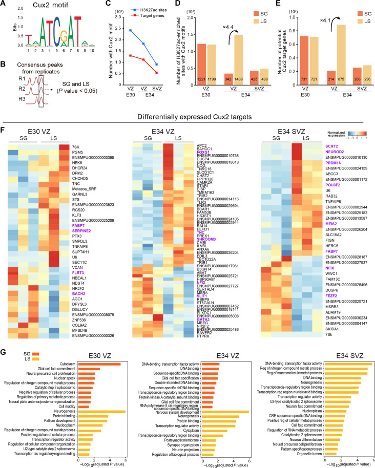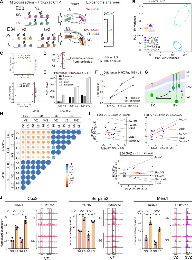 Folding of the cerebral cortex is a key aspect of mammalian brain development and evolution, and defects are linked to severe neurological disorders. Primary folding occurs in highly stereotyped patterns that are predefined in the cortical germinal zones by a transcriptomic protomap. The gene regulatory landscape governing the emergence of this folding protomap remains unknown. We characterized the spatiotemporal dynamics of gene expression and active epigenetic landscape (H3K27ac) across prospective folds and fissures in ferret. Our results show that the transcriptomic protomap begins to emerge at early embryonic stages, and it involves cell-fate signaling pathways. The H3K27ac landscape reveals developmental cell-fate restriction and engages known developmental regulators, including the transcription factor Cux2. Manipulating Cux2 expression in cortical progenitors changed their proliferation and the folding pattern in ferret, caused by selective transcriptional changes as revealed by single-cell RNA sequencing analyses. Our findings highlight the key relevance of epigenetic mechanisms in defining the patterns of cerebral cortex folding.