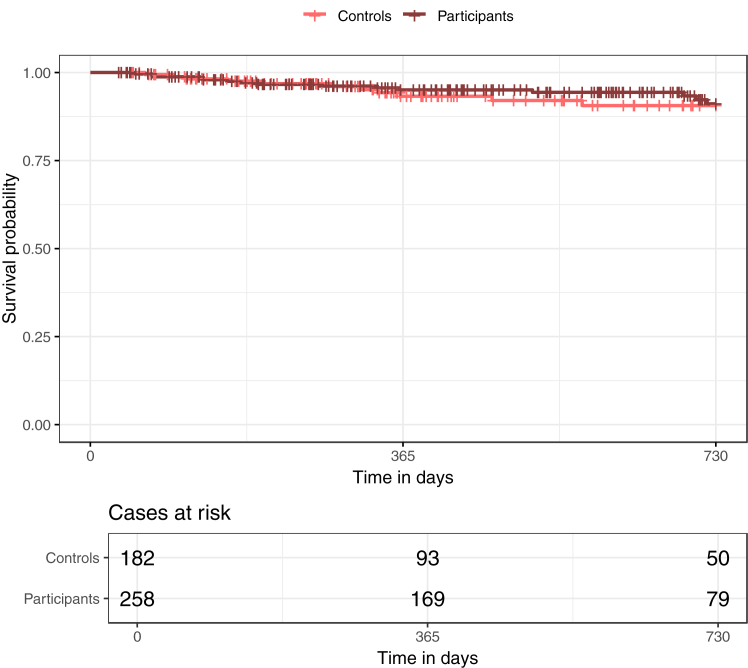 Methods: The study was conducted in the study centers Hannover, Erlangen and Hannoversch Muenden from May 2017 to October 2020 under the trial registration ISRCTN29416382. The program provided a multimodal aftercare program including specialized case management, telemedicine support, psychological and exercise assessments, and interventions. For the analysis of graft failure, which was defined as death, re-transplantation or start of long-term dialysis, we used longitudinal claims data from participating statutory health insurances (SHI) which enabled us to compare participants with controls. To balance covariate distributions between these nonrandomized groups we used propensity score methodology, in particular the inverse probability of treatment weighting (IPTW) approach.