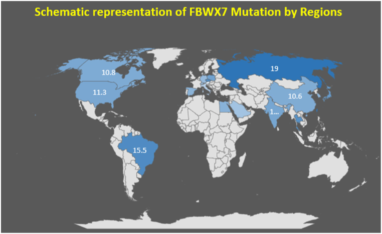 FBXW7 is a tumour suppressor gene that functions as E3-ubiquitin-ligase, targeting numerous oncoproteins for degradation, i.e., Cyclin-E, c-Myc, and Notch. FBXW7 performs a pivotal role in regulating cell cycle progression. FBXW7 mutation is frequently implicated in various cancers.