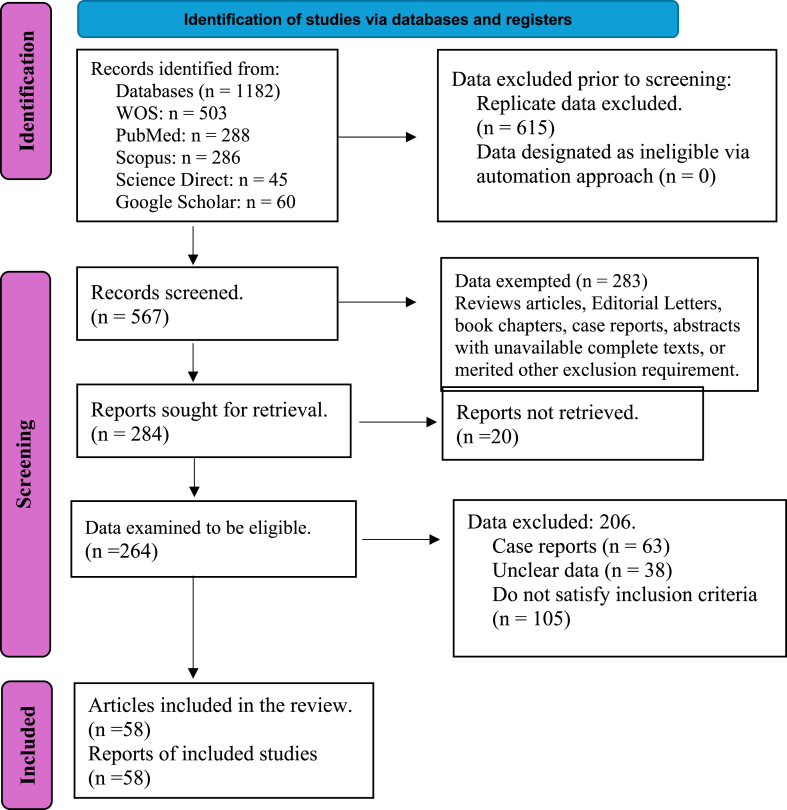 Methodology: A systematic review and meta-analysis done on several studies using "Preferred Reporting Items for Systemmatic Reviews and Meta-Analysis (PRISMA)" criteria and registered with PROSPERO (registration-number-CRD42023388845). The preliminary search comprises 1182 articles; however, 58 studies were subsequently chosen after eliminating non-eligible studies. To explore the prevalence of FBXW7 mutation among colorectal cancer patients, data were analysed using "OpenMeta Analyst and comprehensive meta-analysis-3.0 (CMA-3.0)" software.