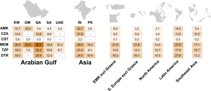 Results: Antimicrobial resistance in the Arabian Gulf was highest to meropenem (10.3-45.7%) and lowest to colistin (0.0-0.8%), among the agents tested. Annual data showed that ceftazidime resistance (Kuwait), piperacillin-tazobactam non-susceptibility (Qatar), and aztreonam, imipenem, and meropenem resistance (Saudi Arabia) increased by 12-17%. Multiple mechanisms of carbapenem resistance were identified and multiple clones were detected, including high-risk clones such as ST235. The most common carbapenemases detected were the VIM-type metallo-β-lactamases.