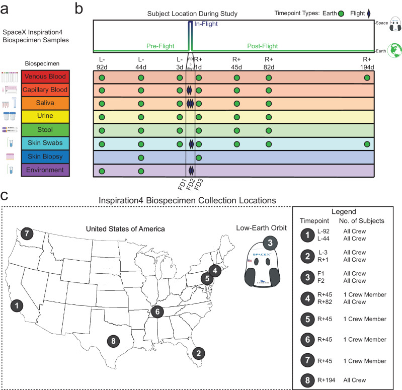 Collection of biospecimens from the inspiration4 mission establishes the standards for the space omics and medical atlas (SOMA)