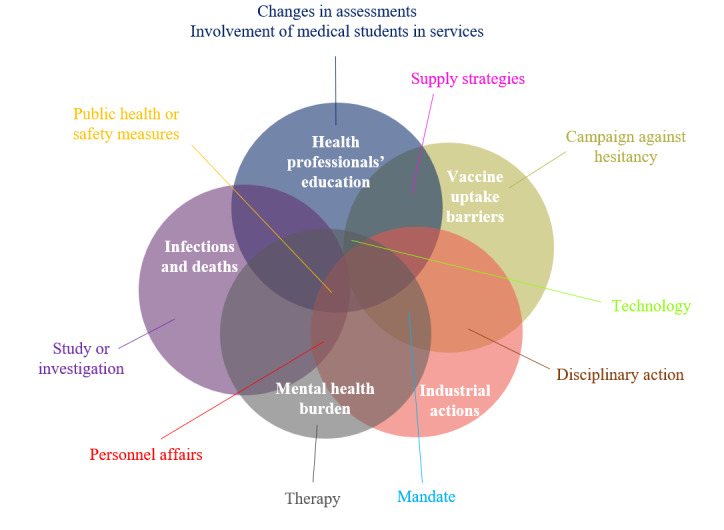 Conclusions: This study demonstrates the capacity of artificial intelligence-assisted media content analysis applied to open-source news articles and reports concerning the health workforce. Adequate remuneration packages and personal protective equipment supplies should be prioritized as preventive measures to reduce the initial impact of future pandemics on the health workforce. Interventions aimed at lessening the emotional toll and workload need to be formulated as a part of reactive measures, enhancing the efficiency and maintainability of health delivery during a pandemic.