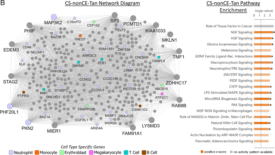 Methods: We studied patients with cancer and IS (CS; n = 42), stroke only (SO; n = 41), and cancer only (n = 28), and vascular risk factor-matched controls (n = 30). mRNA-Seq and miRNA-Seq data, analyzed with linear regression models, identified differentially expressed genes in CS versus SO and in cardioembolic versus noncardioembolic CS, and miRNA-mRNA regulatory pairs. Network-level analyses identified stroke etiology-specific responses in CS.