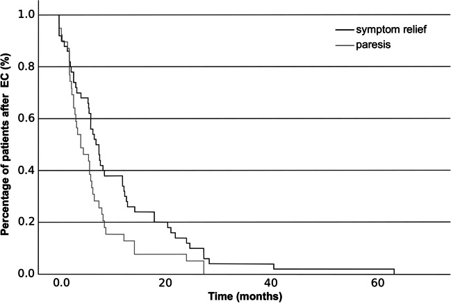 Results: Eighteen patients with 53 RFTs were identified from the medical records. 11 (61 %) patients had repeated RFTs, and the mean number of RFTs per patient was 3.33 (3.29 SD). The mean follow-up was 5.54 years (7.5 SD). 12 (67 %) patients had had microvascular decompression (MVD) before RFT. Patients were satisfied with the results after 87 % of RFTs. Relief of the twitching of the face lasted 11.27 months (11.94 SD). All patients had postoperatively transient facial paresis. Postoperative paresis lasted a mean of 6.47 months (6.80 SD). The depth of paresis was postoperatively typically moderate (36.54 %, House Brackmann III). 23.08 % had mild paresis (House-Brackmann II), 23.08 % had moderately severe dysfunction (House-Brackmann IV), 9.62 % had severe dysfunction, and 7.69 % had total paralysis of the facial muscles (House-Brackmann VI). Duration of relief in the face twitching (p 0.002) and temperature at the final coagulation point (p 0.004) were statistically significant predictors of satisfaction with the RFT results.