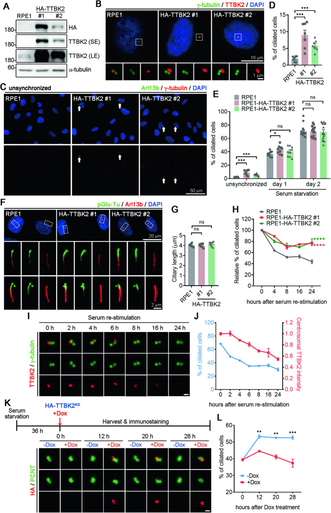 Development of the cerebellum requires precise regulation of granule neuron progenitor (GNP) proliferation. Although it is known that primary cilia are necessary to support GNP proliferation, the exact molecular mechanism governing primary cilia dynamics within GNPs remains elusive. Here, we establish the pivotal roles for the centrosomal kinase TTBK2 (Tau tubulin kinase-2) and the E3 ubiquitin ligase HUWE1 in GNP proliferation. We show that TTBK2 is highly expressed in proliferating GNPs under Sonic Hedgehog (SHH) signaling, coinciding with active GNP proliferation and the presence of primary cilia. TTBK2 stabilizes primary cilia by inhibiting their disassembly, thereby promoting GNP proliferation in response to SHH. Mechanistically, we identify HUWE1 as a novel centrosomal E3 ligase that facilitates primary cilia disassembly by targeting TTBK2 degradation. Disassembly of primary cilia serves as a trigger for GNP differentiation, allowing their migration from the external granule layer (EGL) of the cerebellum to the internal granule layer (IGL) for subsequent maturation. Moreover, we have established a link between TTBK2 and SHH-type medulloblastoma (SHH-MB), a tumor characterized by uncontrolled GNP proliferation. TTBK2 depletion inhibits SHH-MB proliferation, indicating that TTBK2 may be a potential therapeutic target for this cancer type. In summary, our findings reveal the mechanism governing cerebellar development and highlight a potential anti-cancer strategy for SHH-MB.
