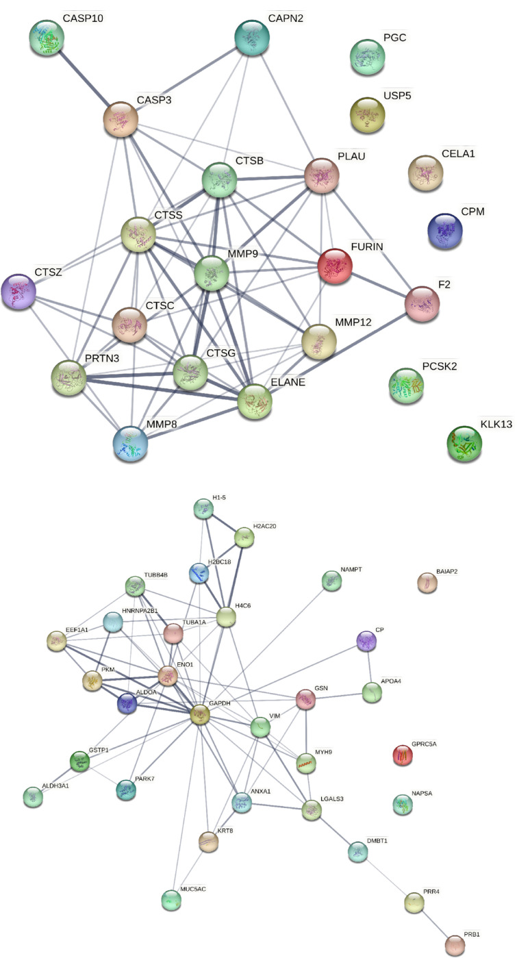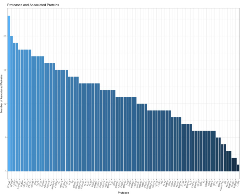 Findings: We identified 101 proteases, of which 95 had functional network associations and 22 correlated with FEV1pp. These included cathepsins, metalloproteinases (MMP), caspases and neutrophil elastase. We discovered 31 proteins subject to proteolytic cleavage that associate with FEV1pp, with the top pathways involved in small ubiquitin-like modifier mediated modification (SUMOylation). Proteases linked to protein cleavage included neutrophil elastase, granzyme, and cathepsin D.