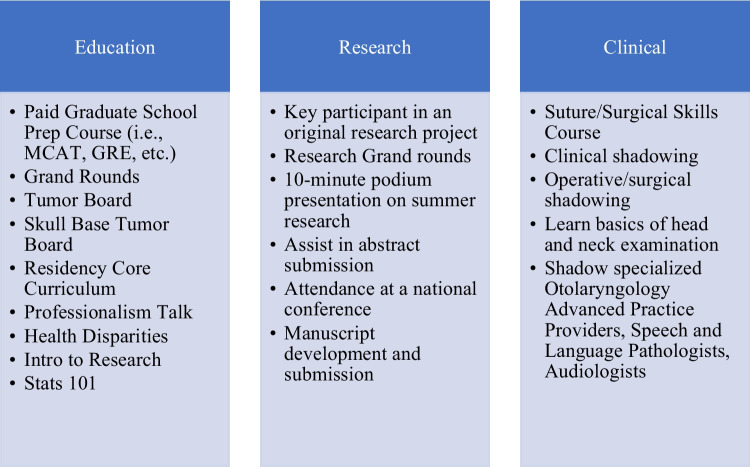 Conclusion: Identifying mentors, curriculum, and opportunities to meaningfully strengthen graduate school applications for URiM students through a clinically rigorous, financially supported, and research-focused summer program in an academic otolaryngology program is feasible and may be an effective means of increasing diversity in medicine and otolaryngology.