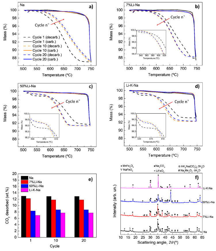 Keywords: atomic substitution; carbonation; decarbonation; hydrogen production; sodium manganese ferrite cycle; thermochemical water splitting.