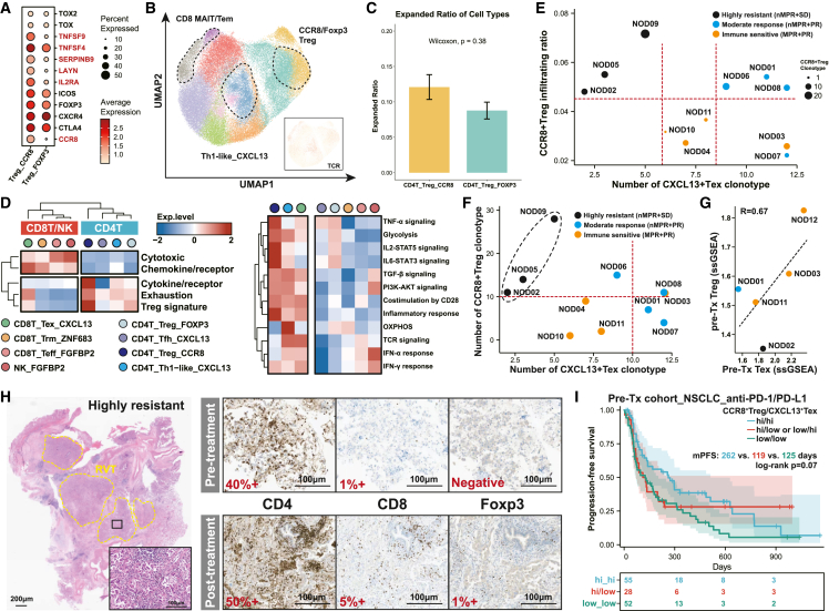 The clinical efficacy of neoadjuvant immunotherapy plus chemotherapy remains elusive in localized epidermal growth factor receptor (EGFR)-mutant non-small cell lung cancer (NSCLC). Here, we report interim results of a Simon's two-stage design, phase 2 trial using neoadjuvant sintilimab with carboplatin and nab-paclitaxel in resectable EGFR-mutant NSCLC. All 18 patients undergo radical surgery, with one patient experiencing surgery delay. Fourteen patients exhibit confirmed radiological response, with 44% achieving major pathological response (MPR) and no pathological complete response (pCR). Similar genomic alterations are observed before and after treatment without influencing the efficacy of subsequent EGFR-tyrosine kinase inhibitors (TKIs) in vitro. Infiltration and T cell receptor (TCR) clonal expansion of CCR8+ regulatory T (Treg)hi/CXCL13+ exhausted T (Tex)lo cells define a subtype of EGFR-mutant NSCLC highly resistant to immunotherapy, with the phenotype potentially serving as a promising signature to predict immunotherapy efficacy. Informed circulating tumor DNA (ctDNA) detection in EGFR-mutant NSCLC could help identify patients nonresponsive to neoadjuvant immunochemotherapy. These findings provide supportive data for the utilization of neoadjuvant immunochemotherapy and insight into immune resistance in EGFR-mutant NSCLC.