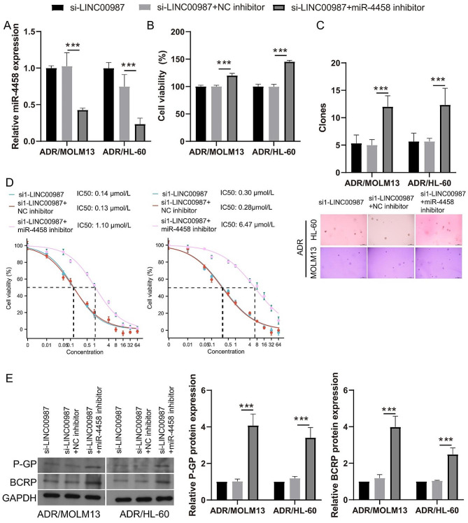 Results: We found that higher expression of LINC00987 was observed in AML patients and associated with poor overall survival in AML patients. LINC00987 expression was increased in ADR-resistant AML cells, including ADR/MOLM13 and ADR/HL-60 cells. LINC00987 downregulation reduces ADR resistance in ADR/MOLM13 and ADR/HL-60 cells in vitro and in vivo, while LINC00987 overexpression enhanced ADR resistance in MOLM13 and HL-60 cells. Additionally, LINC00987 functions as a competing endogenous RNA for miR-4458 to affect ADR resistance in ADR/MOLM13 and ADR/HL-60 cells. HMGA2 is a target of miR-4458. LINC00987 knockdown and miR-4458 overexpression reduced HMGA2 expression. HMGA2 overexpression enhanced ADR resistance, which reversed the function of LINC00987 silencing in suppressing ADR resistance of ADR/MOLM13 and ADR/HL-60 cells.